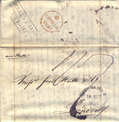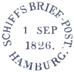 Transitstempel In der Hafenstadt Hamburg spielte der Schiffs-Verkehr von jeher eine entscheidende Rolle, auch auf postalischem Gebiet war die Schiffsverbindung mit England von besonderer Bedeutung. Aber nicht nur für die englische Schiffspost wurde im Jahre 1826 der Transitstempel SCHIFFS BRIEF - POST HAMBURG in Gebrauch genommen von dem es 2 Stempeltypen gibt. Im Jahre 1832 wurde auf Befehl eines hochedlen Rates der Freien und Hansestadt Hamburg eine erste Verordnung über Schiffsbriefe erlassen, die die Annahme und Weiterleitung der seewärts ankommenden und ausgehenden Brief-Pakete aus europäischen und außereuropäischen Plätzen über das Hamburger-Staats-Post-Amt (durch das Comptoir für Schiffsbriefe) regelte und das Porto festlegte.  |